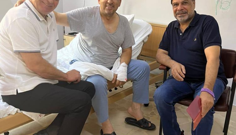 الزميل محسن غازي نقيب الفنانين ونائب النقيب هادي بقدونس بزيارة للفنان القدير سمير كويفاتي في مشفى الطلياني للاطمئنان على صحته بعد العمل الجراحي